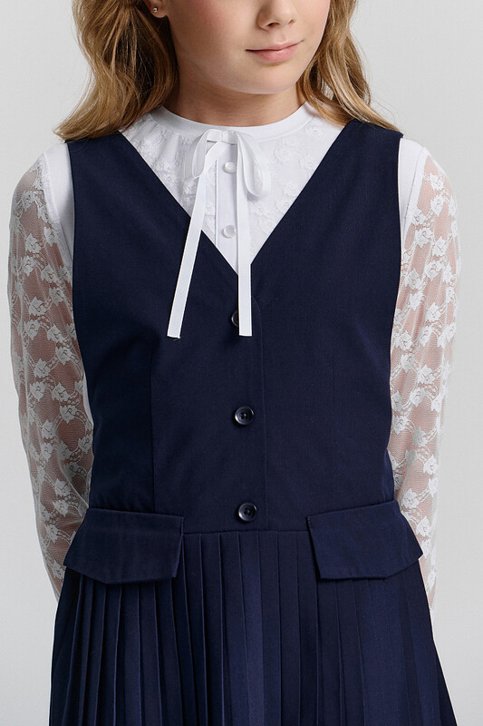 Сшит из смесовой ткани — практичный материал, который не мнётся, дышит и легко стирается. Сарафан прослужит долго, сохраняя аккуратный вид как в школе, так и в повседневной жизни.