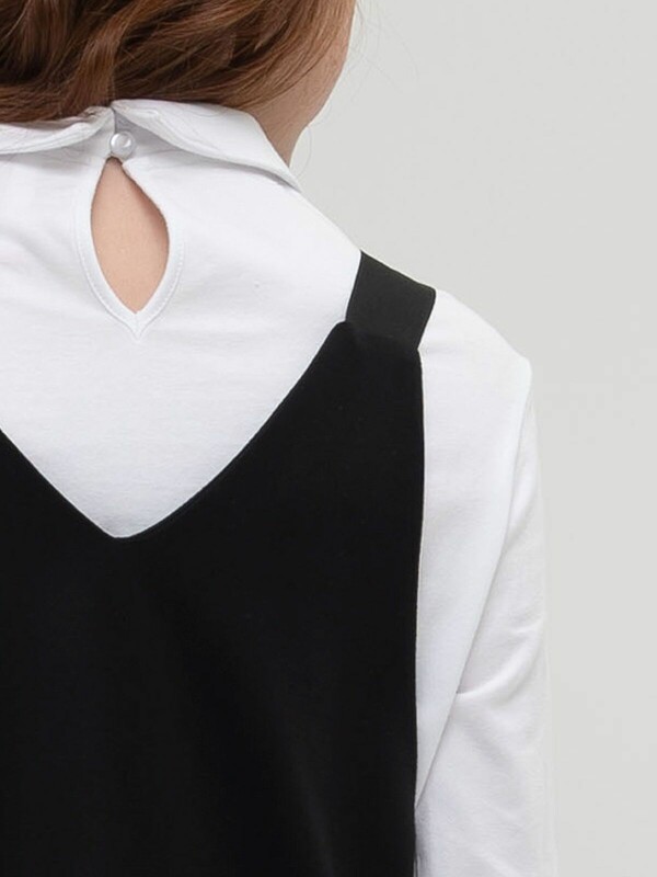 Глубокий вырез на переде и спинке. Позволяет надеть любую футболку, блузку, водолазку, а при желании накинуть любую верхнюю одежду или пиджак.
