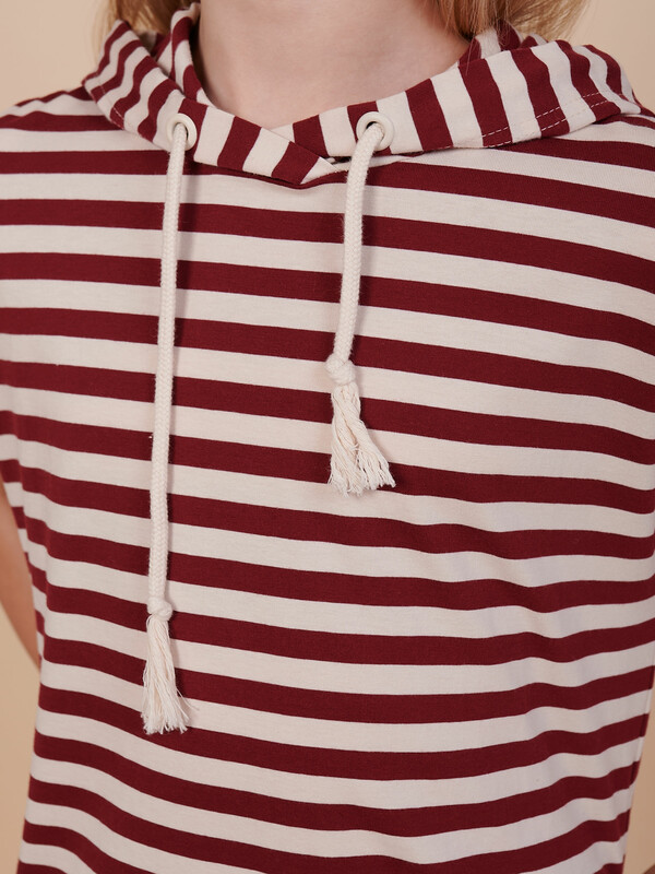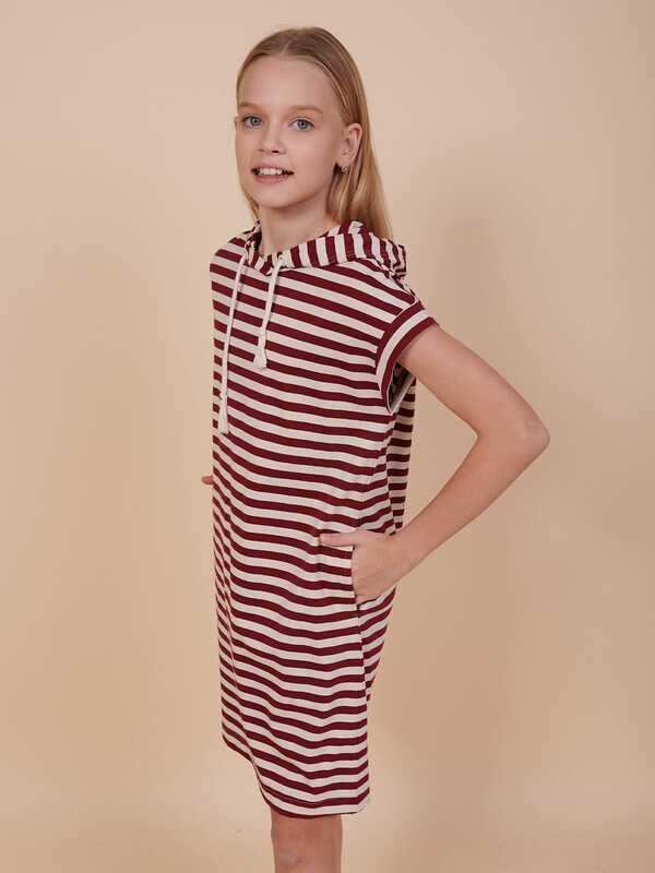 Детское платье худи в полоску для девочки. Платье в спортивном стиле А-силуэта подойдёт для любого типа фигуры. Это идеальный вариант для летнего отдыха — благодаря капюшону нет необходимости в панаме, голову ребёнка не напечёт солнцем. Капюшон двухшовный, красиво и анатомически правильно садится по голове. Есть возможность регулировки капюшона шнуром. Платье-тельняшка — супертренд сезона! Платье умеренного объёма со спущенным плечом подарит ребёнку комфорт и свободу движения. Проймы с широкими притачными манжетами, они отлично держат форму, платье выглядит аккуратно и стильно. В боковых швах имеются карманы — удобно пользоваться. Платье в полоску (полоска вытканная, не принт) украшено красивым принтом в ботаническом стиле по спинке. На принте изображены какао-бобы. Надписи переводятся: "природа", "шоколадное дерево", "вечнозелёное дерево", "какао-бобы содержат вещества, которые стимулируют выработку эндорфинов и серотонина (гормоны счастья)". Принт мягкий и стойкий, не боится частых стирок. За платьем легко ухаживать. В составе ткани 100% высококачественного хлопка — платье мягкое и дышащее. Изделие представлено в двух актуальных вариантах цвета: тёмно-синем и бордовом. Размерная линейка: 1 (86); 2 (92); 3 (98); 4 (104); 5 (110); 6 (116); 7 (122); 8 (128); 9 (134); 10 (140); 11 (146). Платье-худи укороченное идеально для девочек дошкольного и младшего школьного возраста, а также девочек-подростков. Подходит для детского сада, прогулок, отдыха, дома. Платье можно носить летом, а также весной и осенью (демисезон), зимой в качестве домашней одежды. Модное платье — стильный и практичный подарок дочери, внучке или сестре на любой праздник. Выбирайте нужный размер по таблице размеров на фото. Цвет товара на экране вашего устройства может отличаться от цвета изделия вживую.