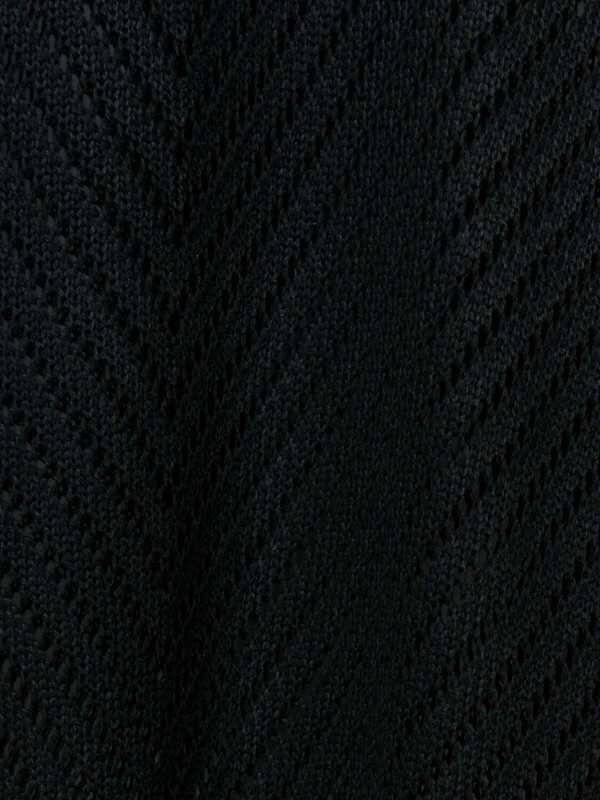 Женская пляжная туника из легкого ажурного трикотажа. Модель без рукавов, с круглой горловиной и свободным прямым кроем, длиной до щиколотки. По бокам предусмотрены разрезы, что добавляет изделию лёгкости и подвижности. Горловина, проймы и низ изделия обработаны контрастной вязаной отделкой. Идеально подходит для пляжа или летнего отдыха.