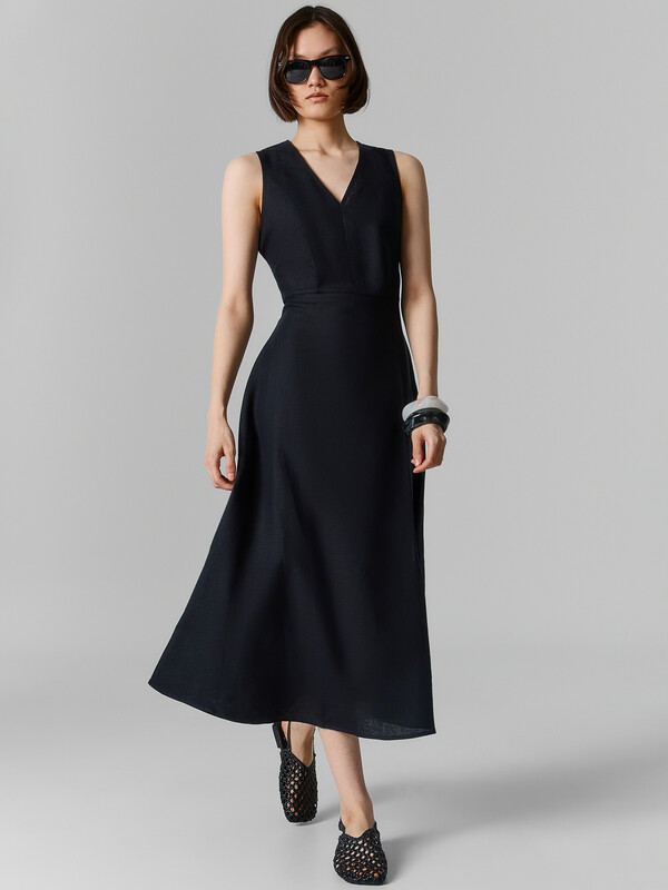 Очаровательное полуприлегающее платье из натурального льна и хлопка станет прекрасным дополнением вашего летнего гардероба. Вырез V-образной формы придает платью элегантность и стиль. Линия талии акцентируется широким поясом, подчеркивая вашу фигуру. На спинке модель застегивается на потайную молнию, что обеспечивает удобство при надевании и снятии. Длина платья ниже колена, к низу расширяется, создавая красивый и женственный силуэт. Такое платье идеально подходит для стильных летних образов, сочетая в себе комфорт и элегантность. Отличный выбор для тех, кто ценит качество и изысканный дизайн в одежде!