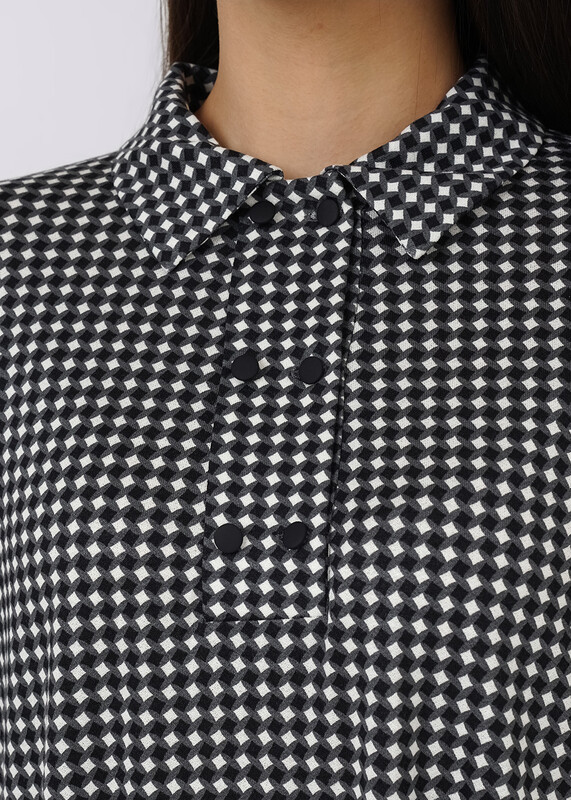 Платье из вискозного трикотажного полотна,немного расклешенное книзу.Длиной выше колена.По горловине отложной воротник.Спереди притачная планка, застежка на пуговицы в два ряда. Втачной длинный рукав,по низу рукава высокий манжет с застежкой на пуговицы.