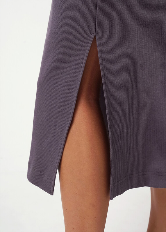 Платье из трикотажного эластичного полотна кашкорсе. Прямого силуэта длиной миди,по бокам разрезы. Округлая горловина с окантовкой. Длинный втачной рукав, внизу нашивка. На спинке принт.