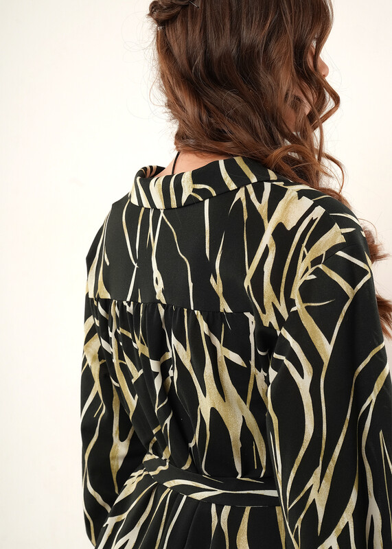 Платье из трикотажного полотна пике. По горловине отложной воротник с обтачкой. По переду средний шов. По спинке кокетка, низ рукава -сборка на резинку ,боковые разрезы. По талии шлевки и съемный пояс