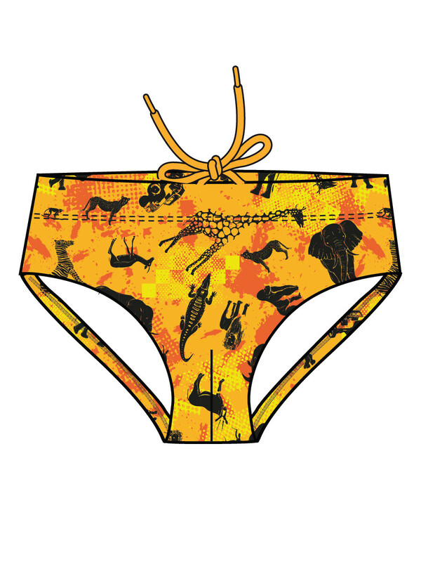 Плавки из быстросохнущего материала. Утяжка пояса шнурком. Благодаря UF-защите, ткань сохраняет первоначальный вид даже при длительном пребывании на солнце.