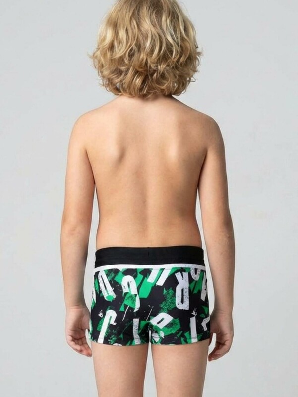 Плавки-шорты средней длины, прилегающего силуэта для мальчика подростка. Изготовлены из эластичного трикотажа, с подкладкой для большего комфорта. Ткань устойчива к солнцу и солёной воде, благодаря UF-защите сохраняет насыщенность цвета и структуру волокон. В поясе — удобная резинка и регулируемый шнурок.