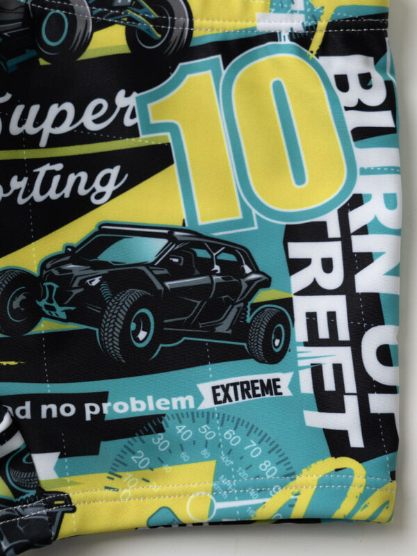 Плавки-шорты детские средней длины, прилегающего силуэта для мальчика. Изготовлены из эластичного трикотажа, с подкладкой для большего комфорта. Ткань устойчива к солнцу и солёной воде, благодаря UF-защите сохраняет насыщенность цвета и структуру волокон. В поясе — удобная резинка и регулируемый шнурок.