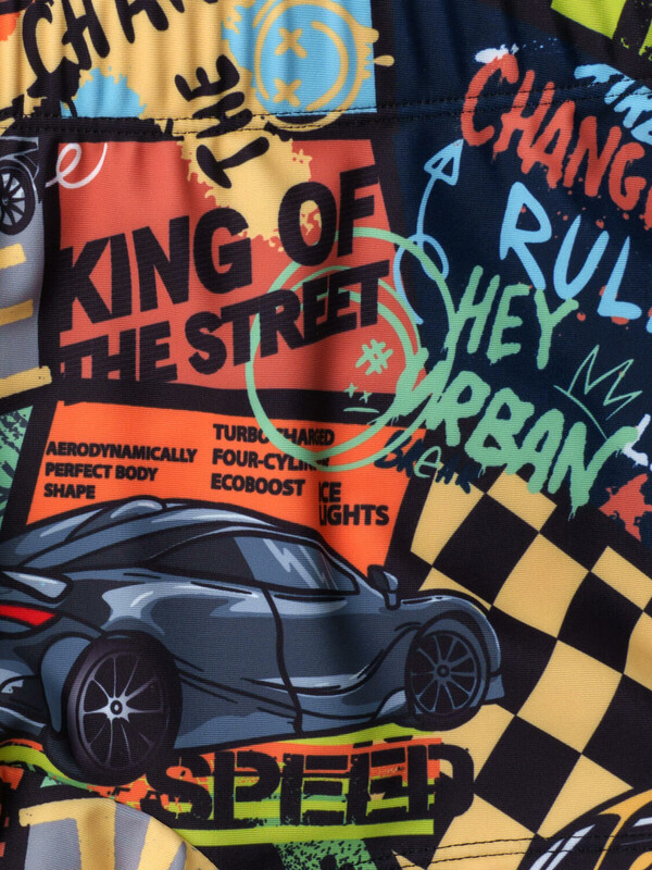 Плавки-шорты средней длины, прилегающего силуэта для мальчика подростка. Изготовлены из эластичного трикотажа, с подкладкой для большего комфорта. Ткань устойчива к солнцу и солёной воде, благодаря UF-защите сохраняет насыщенность цвета и структуру волокон. В поясе — удобная резинка и регулируемый шнурок.