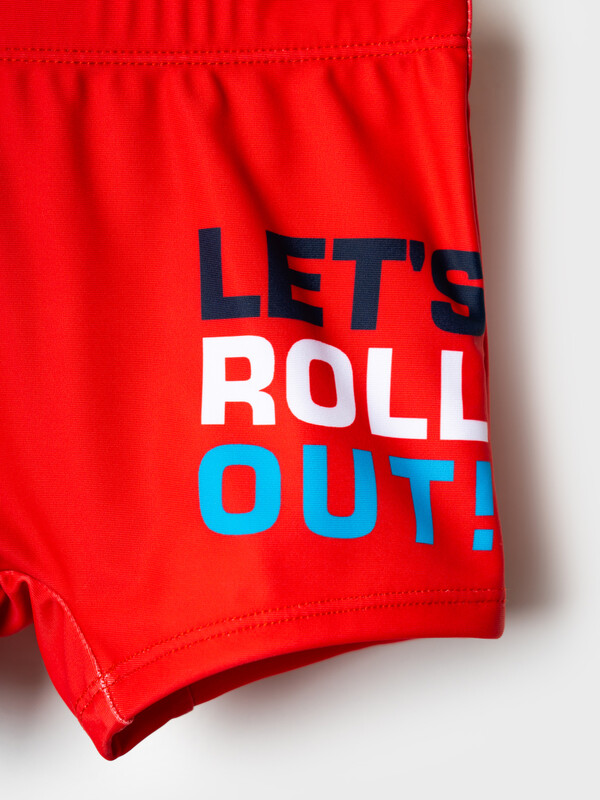 Плавки-шорты детские средней длины, прилегающего силуэта для мальчика. Изготовлены из эластичного трикотажа, с подкладкой для большего комфорта. Ткань устойчива к солнцу и солёной воде, благодаря UF-защите сохраняет насыщенность цвета и структуру волокон. В поясе — удобная резинка и регулируемый шнурок.