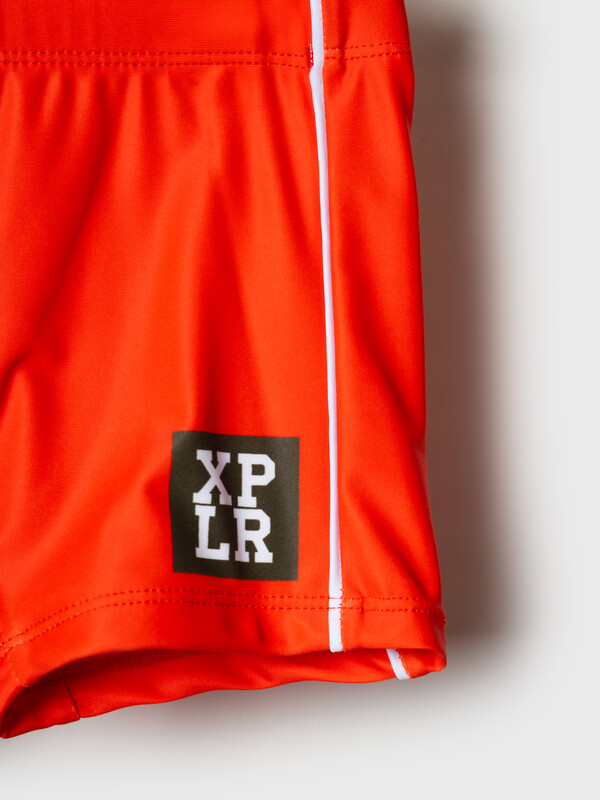 Плавки-шорты детские средней длины, прилегающего силуэта для мальчика. Изготовлены из эластичного трикотажа, с подкладкой для большего комфорта. Ткань устойчива к солнцу и солёной воде, благодаря UF-защите сохраняет насыщенность цвета и структуру волокон. В поясе — удобная резинка и регулируемый шнурок.