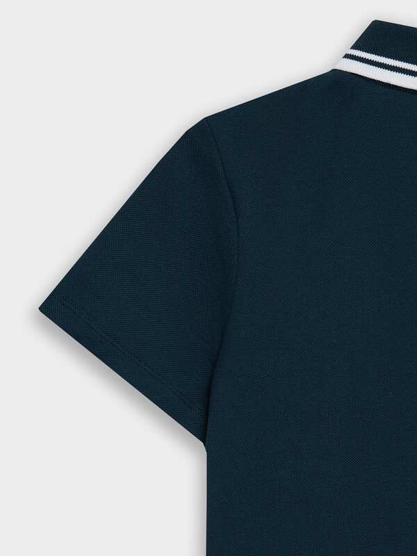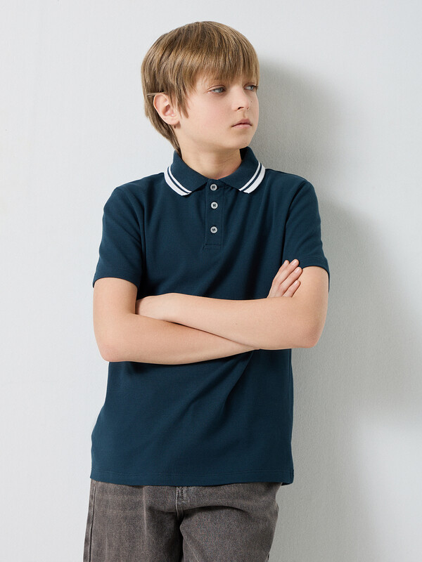 Силуэт прямой. Перед, спинка цельнокроеные. По переду изделия выполнен разрез на застежку на 3 вертикальные петли и пуговицы. В горловину втачен готовый воротник (довяз). Припуск шва втачивания воротника в горловину по спинке окантован бейкой, настроченной по перегибу на спинку между плечевыми швами. Рукава короткие одношовные. Низ изделия и рукавов обработаны швом в подгибку.
