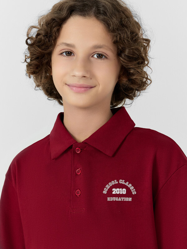 Поло свободного силуэта, перед и спинка цельнокроеные. По переду обработана застежка «поло» на 3 петли и пуговицы (d=10мм). Горловина с воротником стойкой из основного полотна. Рукав втачной, одношовный, плечо спущено. Низу рукава и поло подложены на плоскошовке.