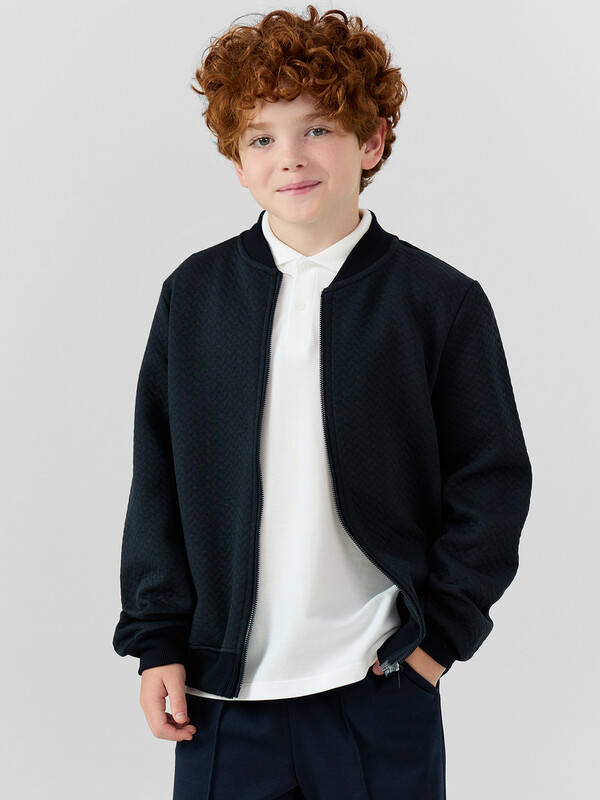 Джемпер прямого силуэта. Рукава длинные, втачные. Линия плеча спущена. Перед и спинка цельнокроенные. По переду изделия выполнен разрез на застежку на 2 вертикальные петли и пуговицы. В горловину втачан готовый воротник (довяз). Припуск шва втачивания воротника в горловину по спинке окантован бейкой. По низу рукавов притачены манжеты из рибаны. По низу изделия в боковых швах имеются разрезы. Низ изделия обработан швом в подгибку.