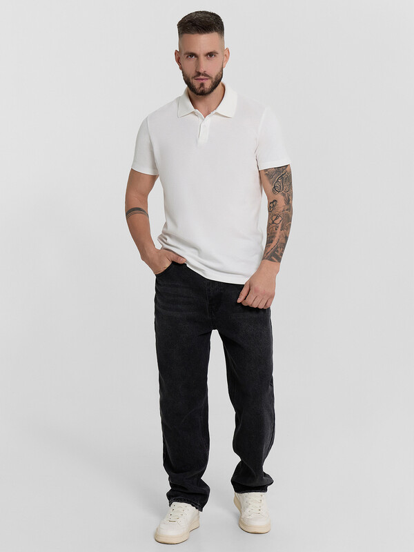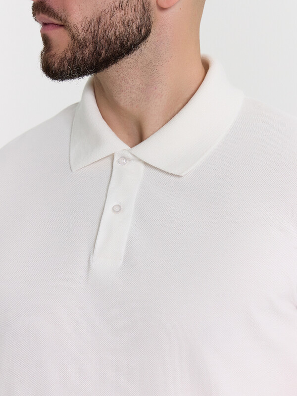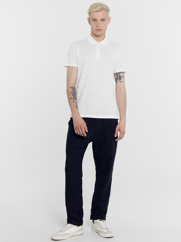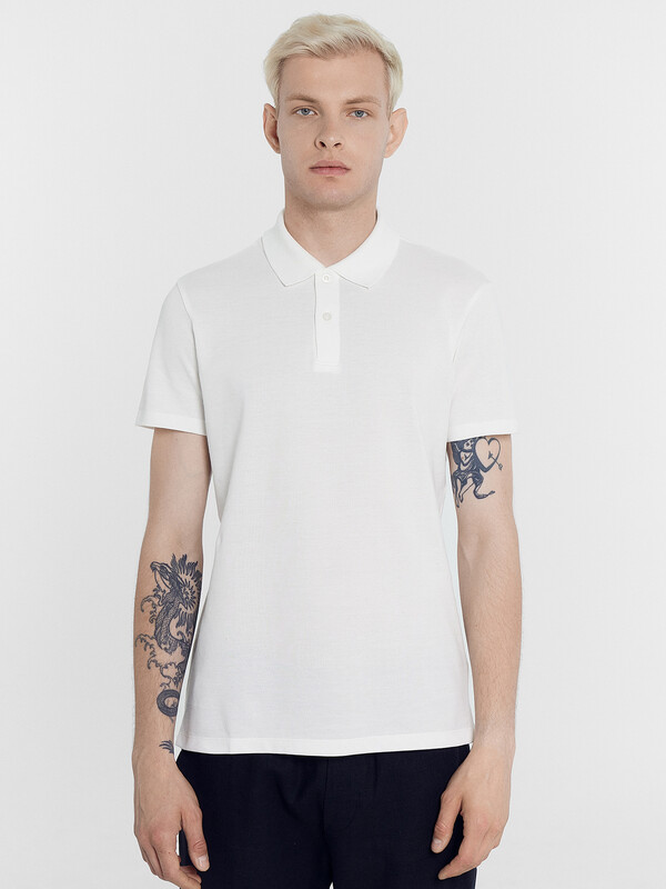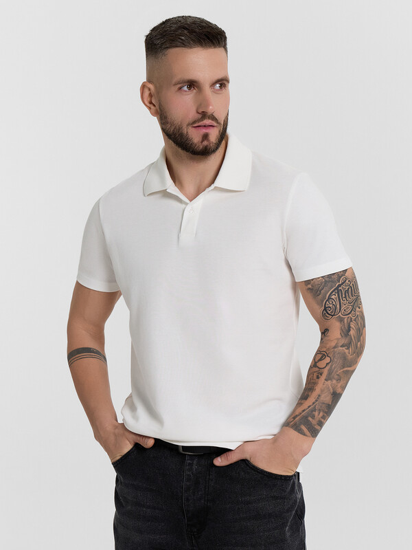 Джемпер мужской «поло» прилегающего силуэта из трикотажного полотна пике. Горловина круглой формы со стояче-отложным воротником из довяза. Центральная застежка планка на пуговицы. Шов горловины спинки обработан хб тесьмой. Рукав втачной, короткий. В боковых швах обработаны разрезы.