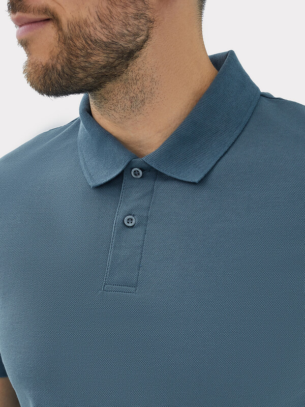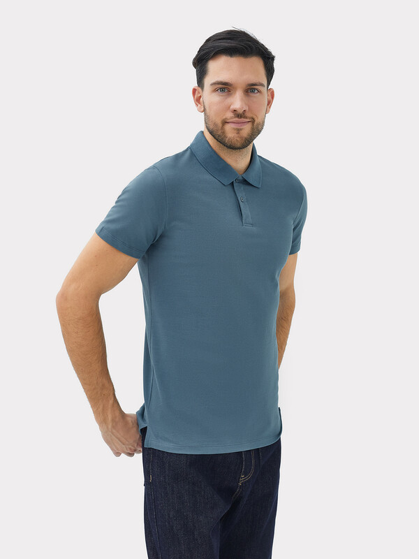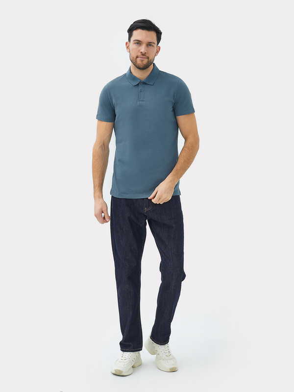 Джемпер мужской «поло» прилегающего силуэта из трикотажного полотна пике. Горловина круглой формы со стояче-отложным воротником из довяза. Центральная застежка планка на пуговицы. Шов горловины спинки обработан хб тесьмой. Рукав втачной, короткий. В боковых швах обработаны разрезы.