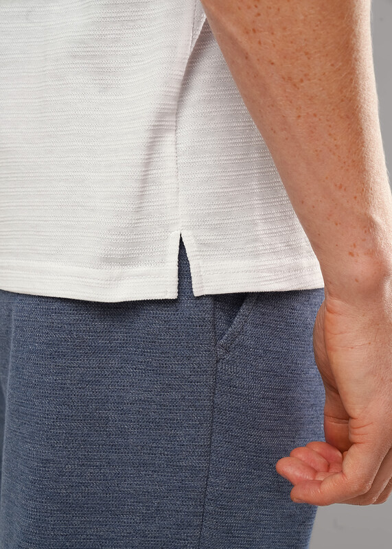 Футболка поло с манжетами и воротником, из фактурного полотна, с содержанием хлопка и полиэстера. Функциональная планка на 3 кнопки. Отличное решение для похода на работу и создания образа в стиле casual.