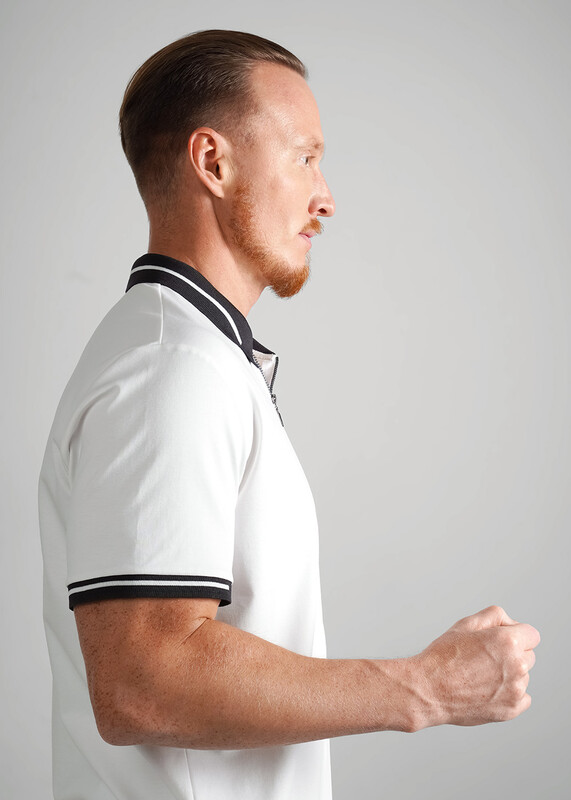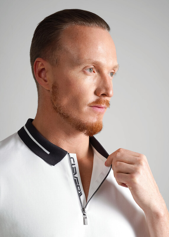Футболка поло на поясе из трикотажного плотного, гладкого полотна. Вязаные отделки. Короткие рукава. Застежка на молнию. Изделие дополнено имиджевым принтом и вышивкой. Отличный вариант для встреч с друзьями.
