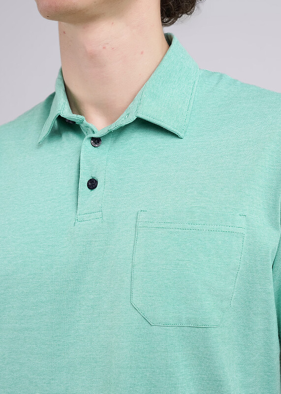 Футболка-поло мужское из хлопкового полотна с добавлением эластана, с воротником, функциональной планкой на пуговицы и карманом. Изделие выгодно подчеркивают лаконичная нашивка по низу изделия. Хорошее дополнение к брюкам или джинсам.