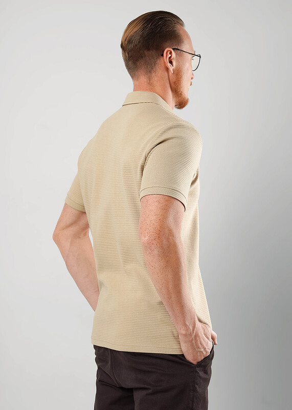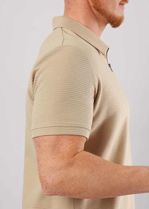 Футболка-поло с коротким рукавом на манжете и функциональной планкой на молнию. Изделие выполнено из фактурного трикотажного полотна с эффектом валиков. Модель можно дополнить брюками или джинсами. Отличный вариант для встреч с друзьями.