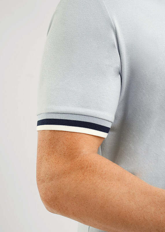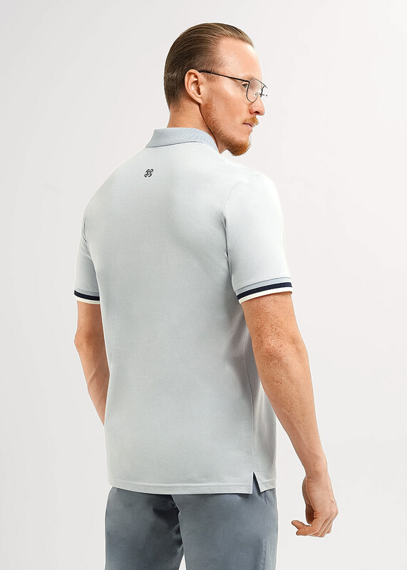 Футболка-поло с вязаными отделками из фактурного полотна ""пике"". Модель с коротким рукавом на манжете и функциональной планкой на 3 пуговицы. Модель можно дополнить брюками или джинсами. Отличный вариант для встреч с друзьями.