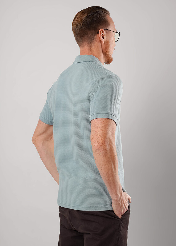 Футболка-поло с коротким рукавом на манжете и функциональной планкой на молнию. Изделие выполнено из фактурного трикотажного полотна с эффектом валиков. Модель можно дополнить брюками или джинсами. Отличный вариант для встреч с друзьями.