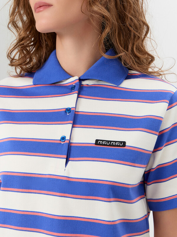 Поло прямое, свободное. Рукава втачные короткие, плечо слегка спущено. Перед с застежкой "поло". Верхняя планка цельнокроеная. Застежка на 3 петли и пуговицы (D 10мм). Воротник из довяза (арт. DVC-100/001-0/5). Шов втачивания воротника закрыт тесьмой хб 10мм. Низ поло и рукавов обработан швом вподгибку.
