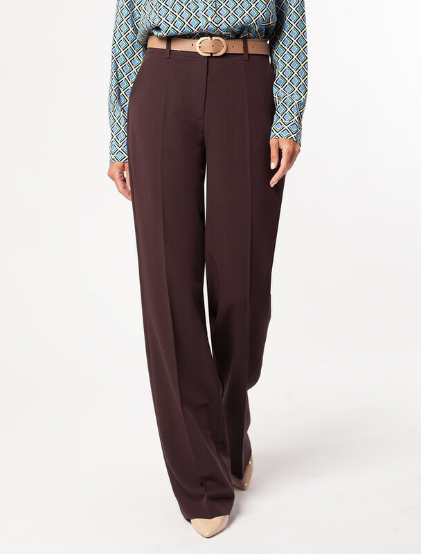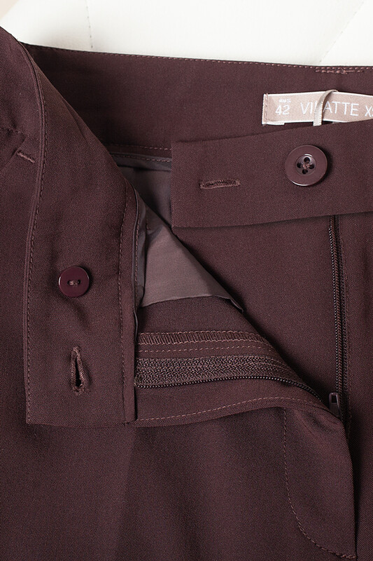 Свободные прямые брюки выполнены из поливискозы с добавлением стрейчевых волокон полиэстера. Материал с плотным переплетением нитей почти не мнется, поэтому стрелки долго сохраняют четкость. Имеют приятную фактуру с матовым блеском. Совет стилиста: строгий и элегантный образ дополните любым жакетом и обувью на высоком каблуке, а сели хотите создать непринужденный образ, сочетайте с рубашкой, футболкой и кедами белого цвета.