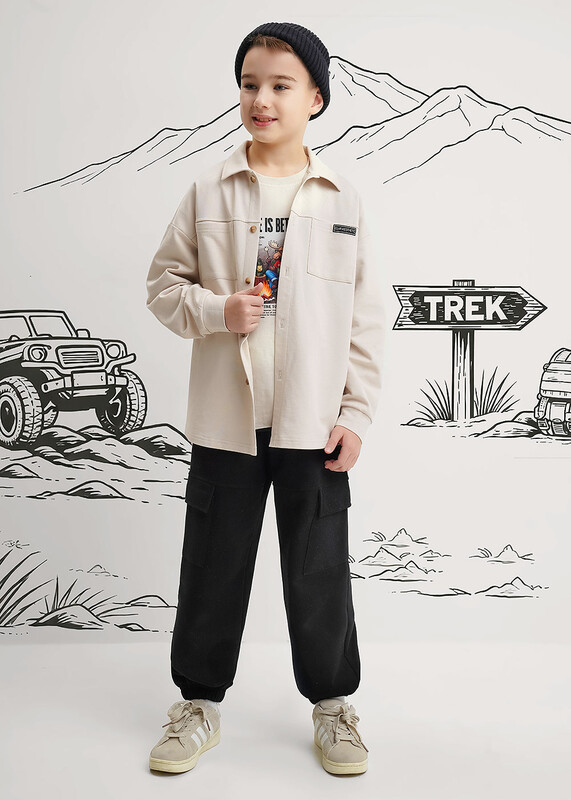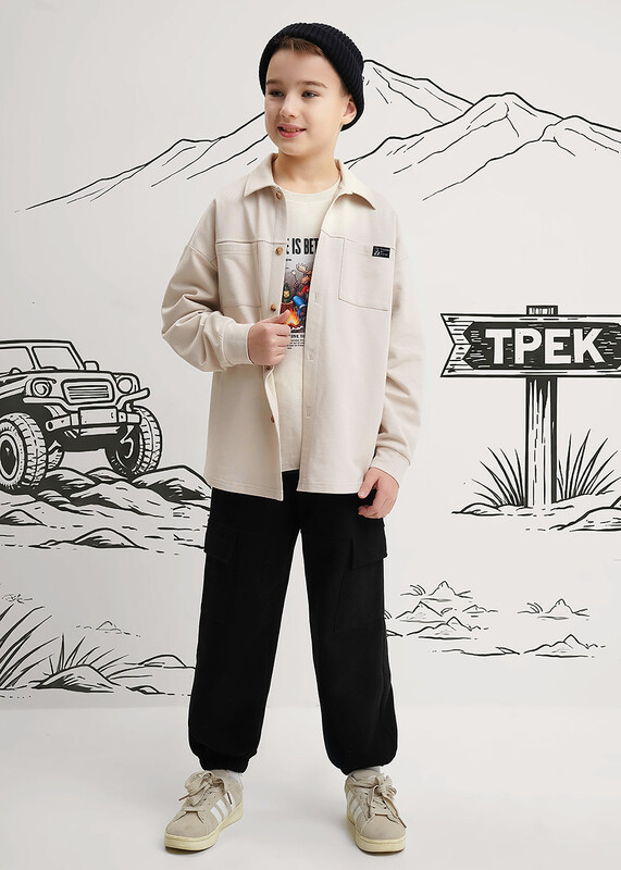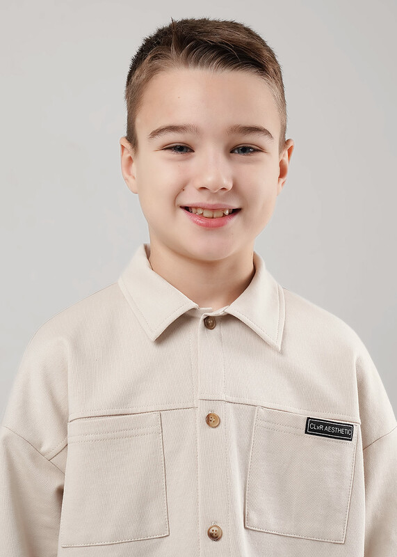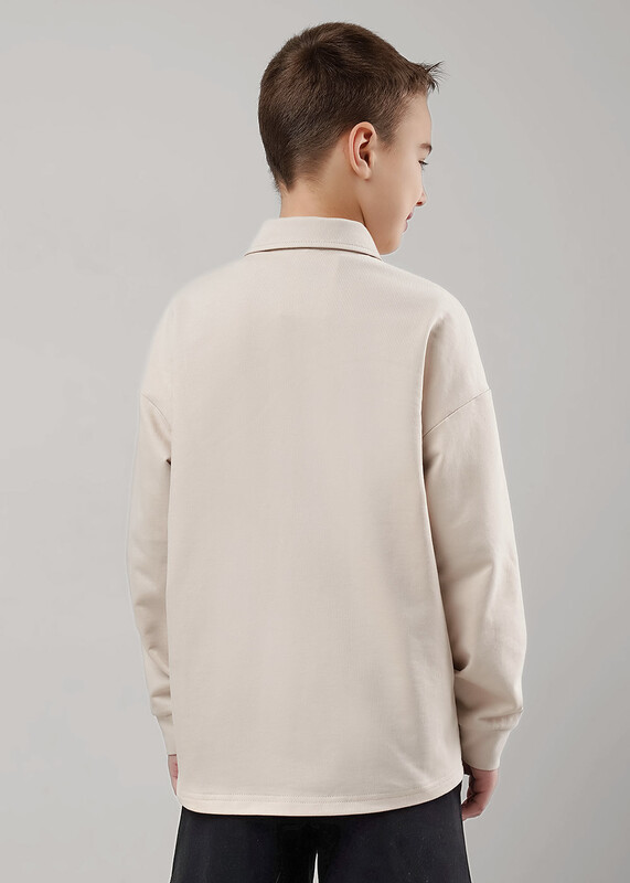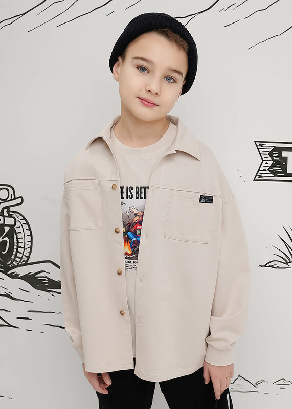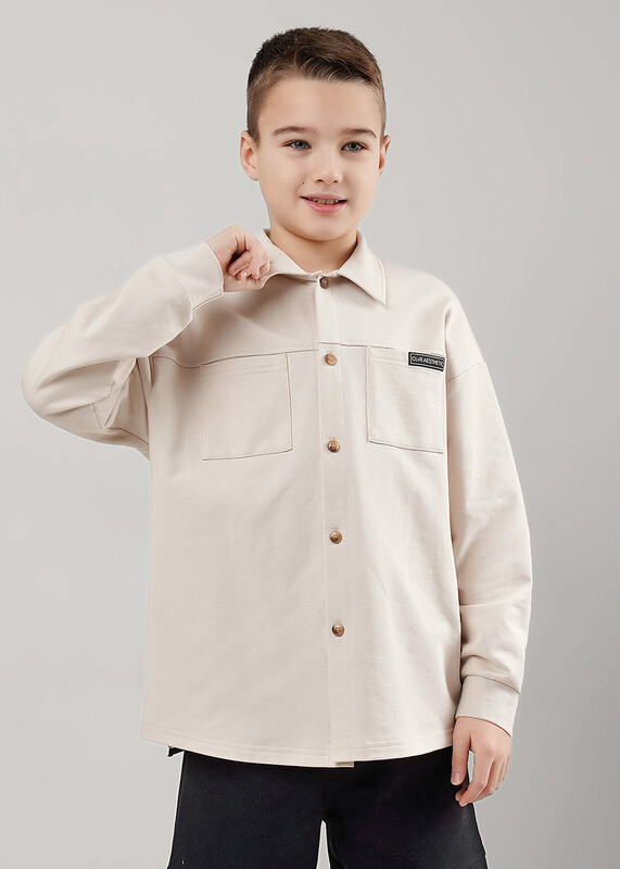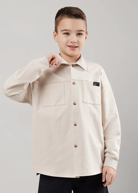 Уютная рубашка для мальчика из мягкого футера. Стильные накладные карманы украшены декоративной нашивкой, добавляющей изделию индивидуальности. Комфортная посадка и современный дизайн делают эту модель идеальной для повседневной носки.