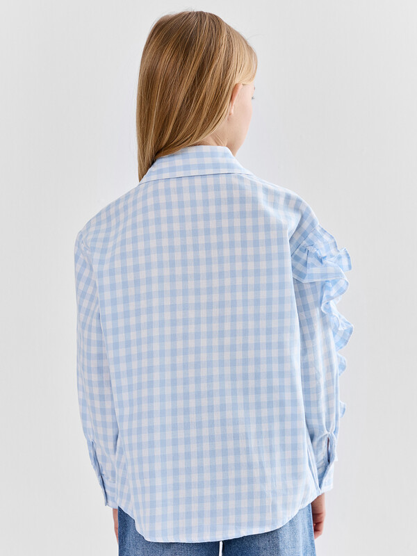 РУБАШКА ДЛЯ ДЕВОЧЕК 127997 (122-128 (128-64), голубая клетка)(Mark Formelle)