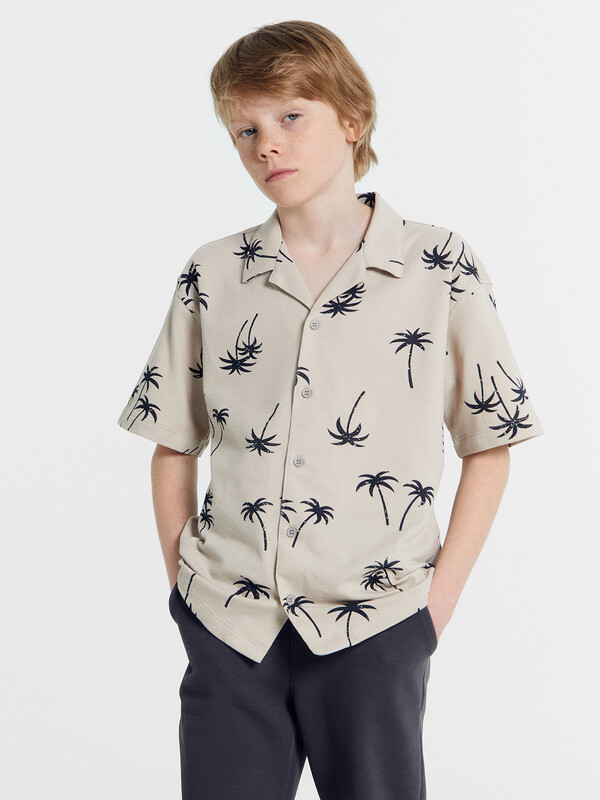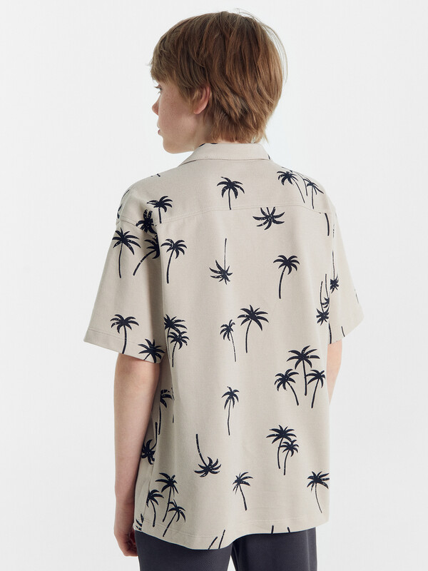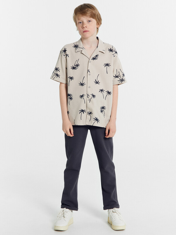 Сорочка верхняя для мальчиков прямого силуэта с воротником. По переду обработана застежка на пуговицы и петли. Диаметр пуговицы 1 см, 4 прокола. Рукава короткие, втачные, слегка спущены. На спине кокетка. Нижние срезы изделия и рукавов обработаны швом в подгибку.