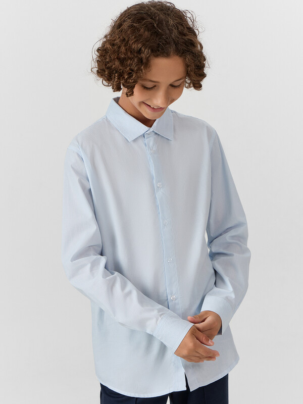 РУБАШКА ДЛЯ МАЛЬЧИКОВ 123478 (150-152 (152-76), бело -голубая полоска)(Mark Formelle)