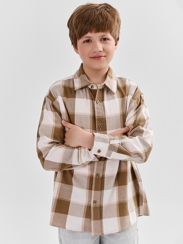 РУБАШКА ДЛЯ МАЛЬЧИКОВ 123502 (150-152 (152-76-35), коричневая клетка)(Mark Formelle)