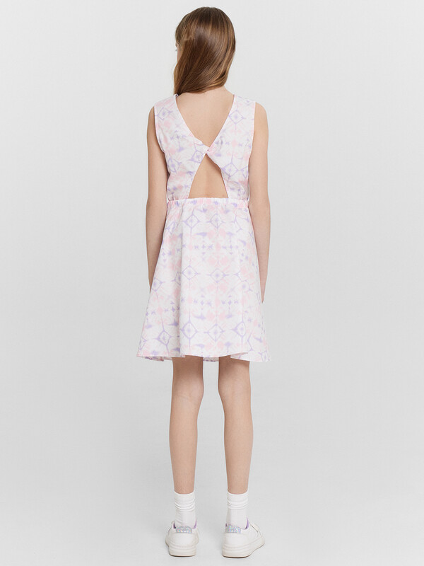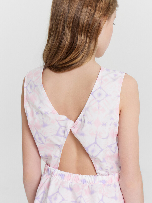 Спинка с декоративно перекручена. Вырез горловины и проймы обработаны в «чистый край».