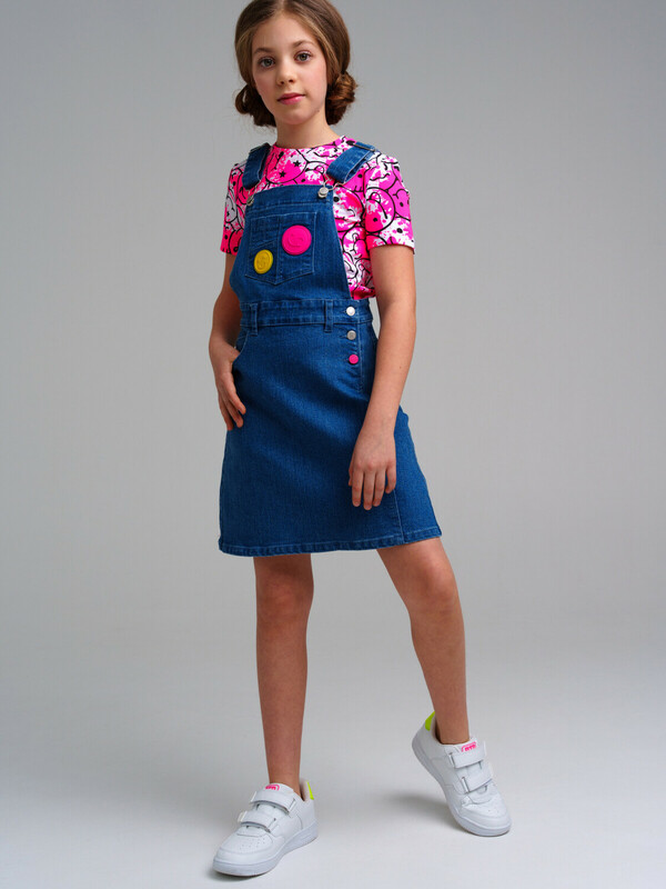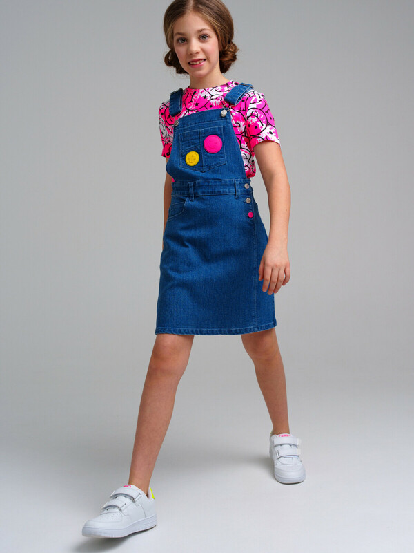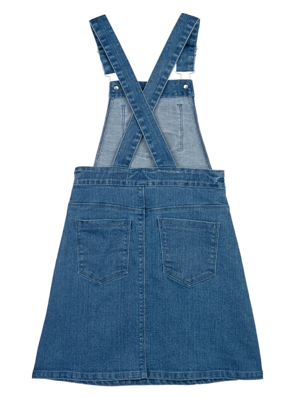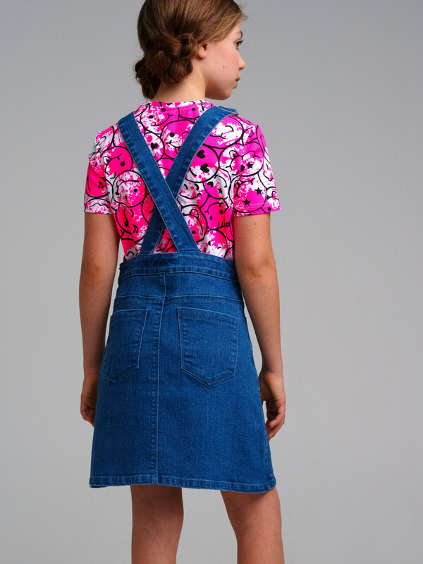 Сарафан джинсовый для девочки. Пояс на резинке с утяжкой, застежка на пуговицы.