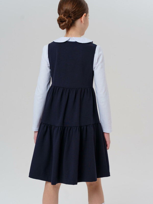 Классический тёмно-синий школьный трикотажный сарафан А-силуэта для девочки подростка от PlayToday — удобная и стильная модель для школьного гардероба. Лаконичный дизайн и комфортная посадка делают этот классический детский сарафан для школы отличным выбором на каждый день.