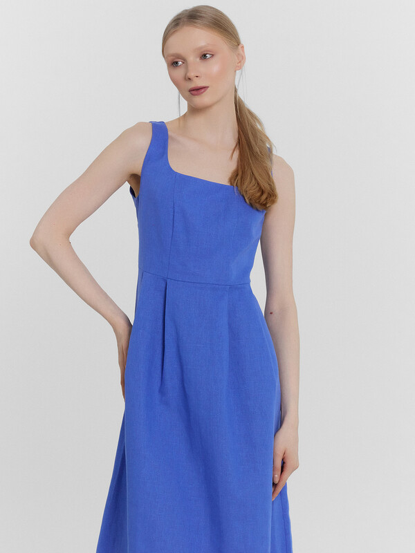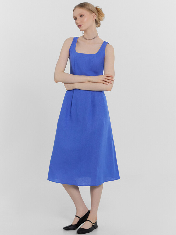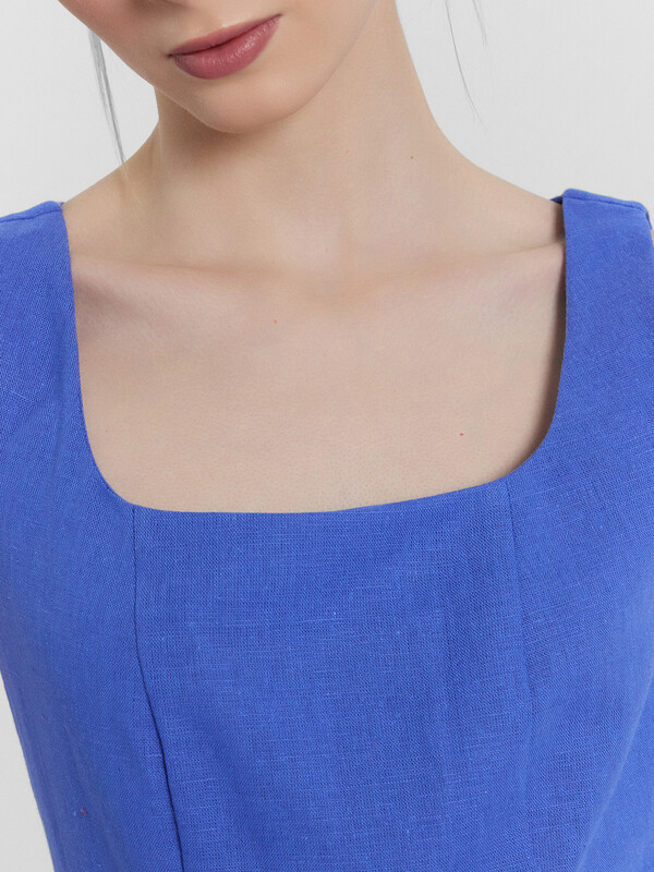 Стильный сарафан миди, выполненный из премиального льна и хлопка, станет прекрасным дополнением вашего гардероба. Модель на бретелях отличается слегка прилегающим силуэтом, который акцентирует внимание на талии, подчеркивая вашу фигуру. А вырез горловины каре и рельефные швы по передней части придают сарафану элегантный и изысканный вид. Застежка на потайную молнию на спинке обеспечивает удобство при надевании и снятии. Этот красивый и комфортный сарафан идеально подходит для теплого времени года, сочетая в себе стиль и комфорт. Отличный выбор для тех, кто ценит качество и элегантность в одежде!