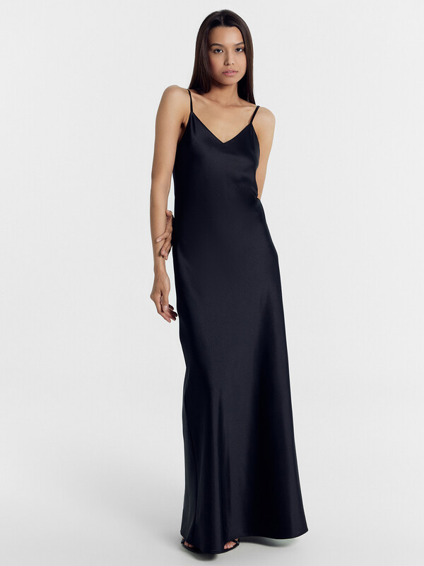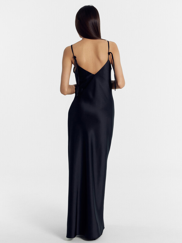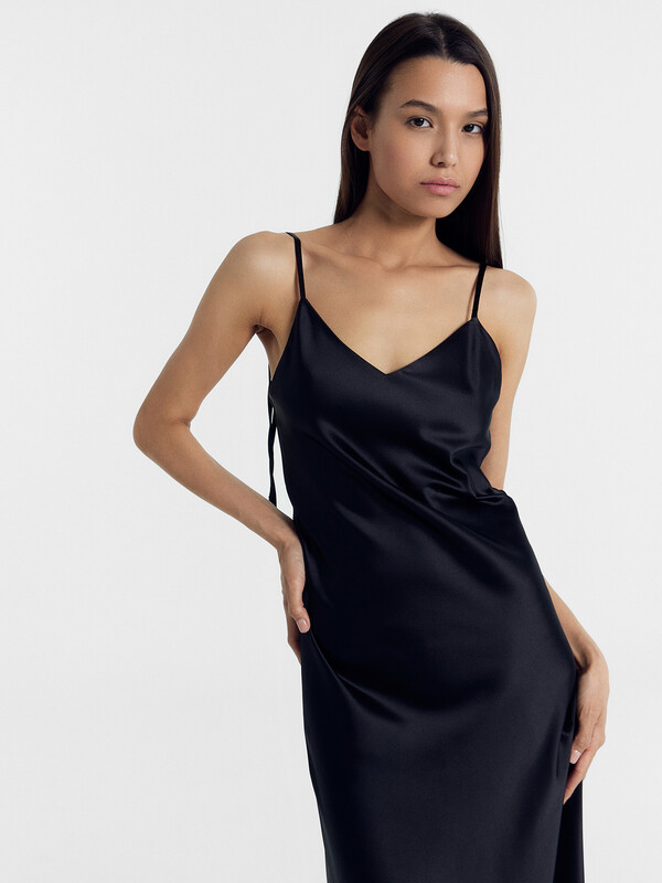 Стильный и элегантный сарафан женский полуприлегающего силуэта на тонких бретелях из высококачественного материала. Длина до середины щиколотки. Горловина V-образной формы. Легкое и воздушное платье на тонких бретелях, на задней детали бретели завязываются на бант. Платье-комбинация тонкое и нежное, отлично садится по фигуре, атласная ткань элегантно подчеркнет ваши достоинства. Прекрасный вариант для романтичного и уютного вечера. Такой сарафан займет достойное место в вашем гардеробе. Стильная вещь, которая несмотря на свой изящный силуэт сочетается со многими базовыми домашними вещами. Можно дополнить любимым стильным верхом, аксессуарами и обувью. Купить платье-комбинацию недорого можно у нас на сайте или магазинах розничной сети Mark Formelle. Отличный выбор для самых модных девушек!
