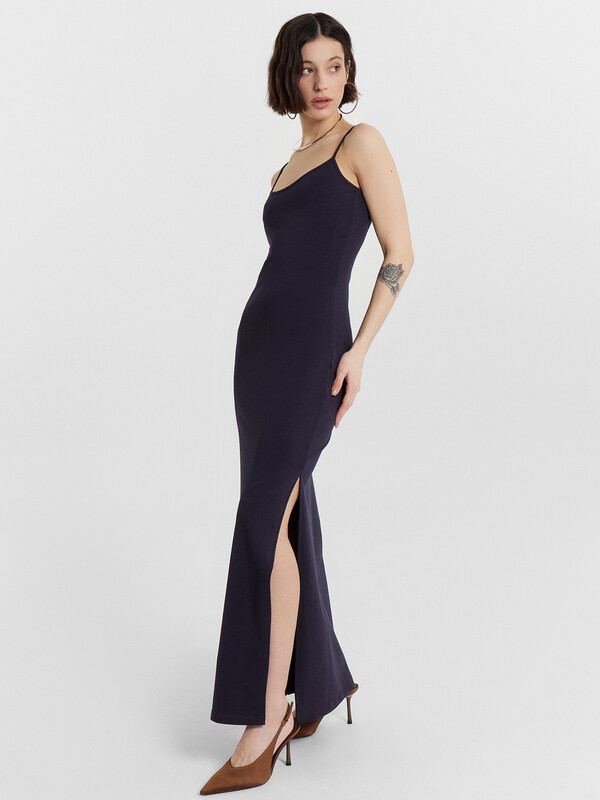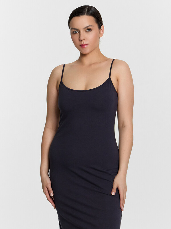 Погрузитесь в мир элегантности с платьем в стиле комбинации, которое подчеркнет вашу женственность и утонченность. Эта модель на тонких бретельках выполнена из мягкого трикотажного футера, обеспечивающего комфорт и отличную посадку по фигуре. Облегающий крой создает изящный силуэт, а круглая горловина добавляет лаконичный штрих к общему образу. Элегантный разрез в левом боковом шве придает платью нотку утонченности и делает его идеально подходящим для особых случаев или романтических вечеров. Макси-длина позволяя сочетать модель с различной обувью и аксессуарами для создания неповторимого стиля. Это платье станет вашим надежным спутником для ярких и запоминающихся моментов!