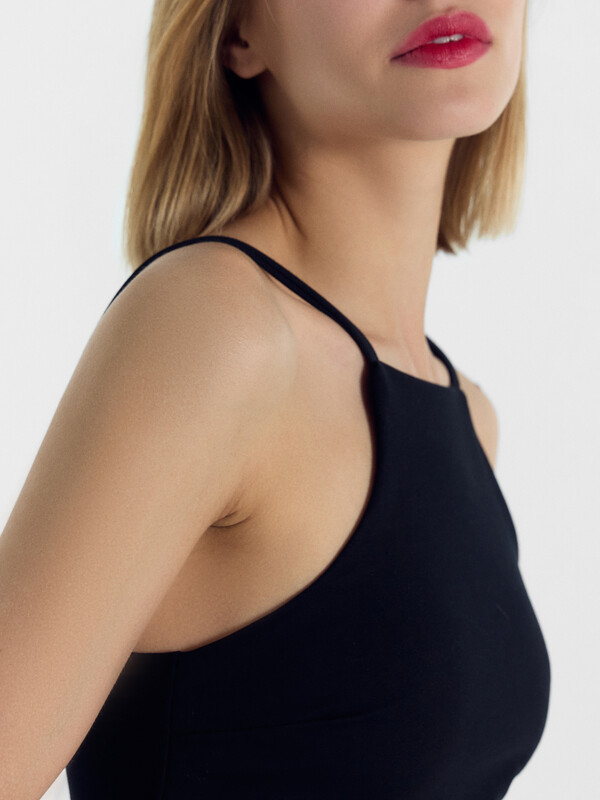 Сарафан длиной выше колена.