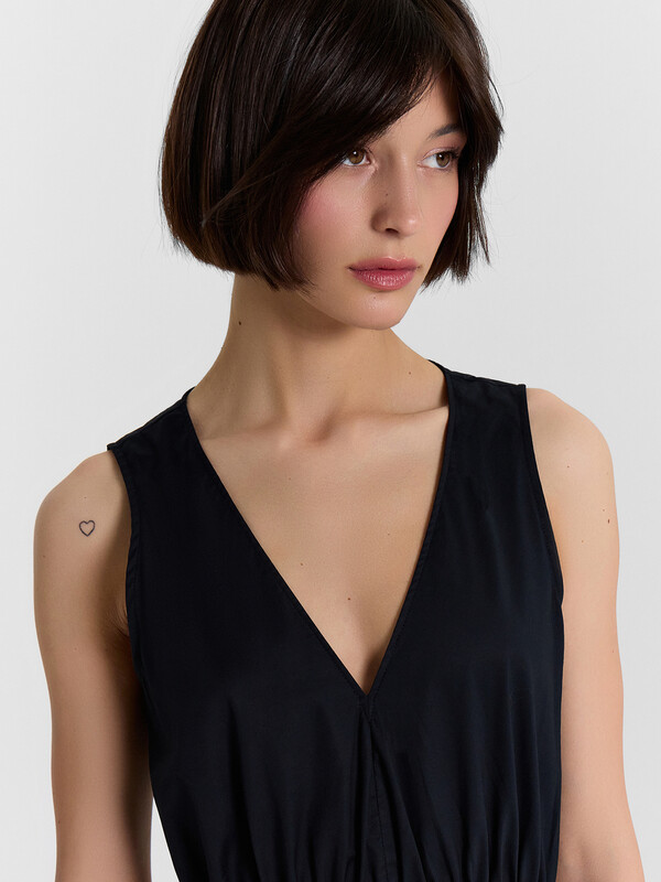 Сарафан женский полуприлегающего силуэта из ткани.
