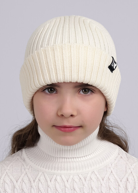 Детская шапка ""бини"", выполнена ластичным переплетением, декорирована стильной нашивкой. Шапка по голове с небольшим двойным отворотом, за счет которого можно регулировать глубину шапки. Отлично подойдёт для осени.