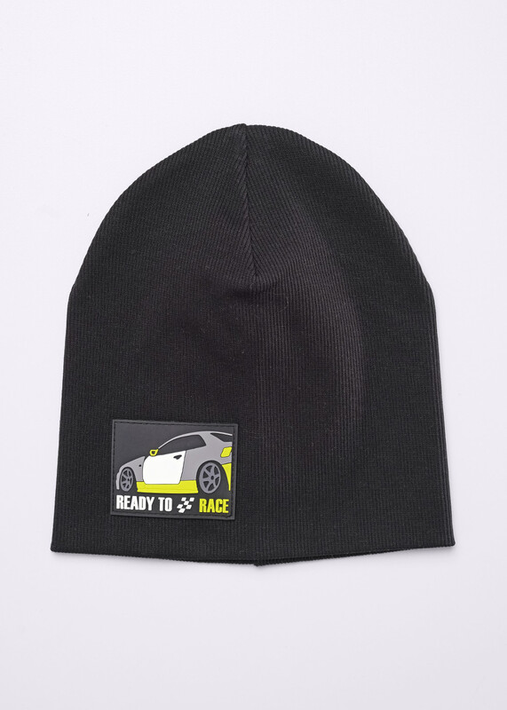 Шапка детская двойная без отворота, декорирована стильной нашивкой. Изготовлена из хлопка. Размер 52-54