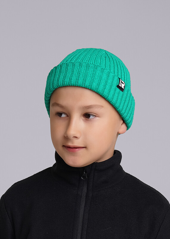 Детская шапка ""бини"", выполнена ластичным переплетением, декорирована стильной нашивкой. Шапка по голове с небольшим двойным отворотом, за счет которого можно регулировать глубину шапки. Отлично подойдёт для осени.