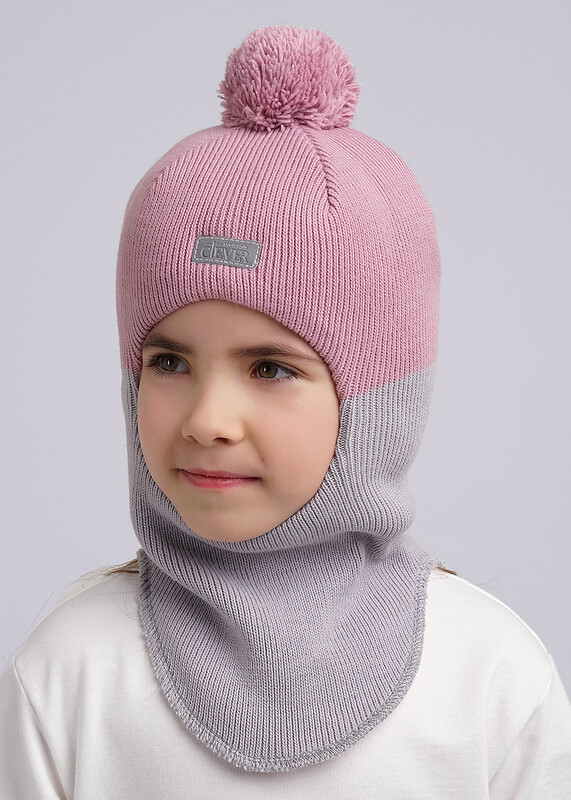 Детский шлем с флисом и дополнительным утеплением из синтепона по всей голове. Декорировано пампоном и стильной нашивкой.