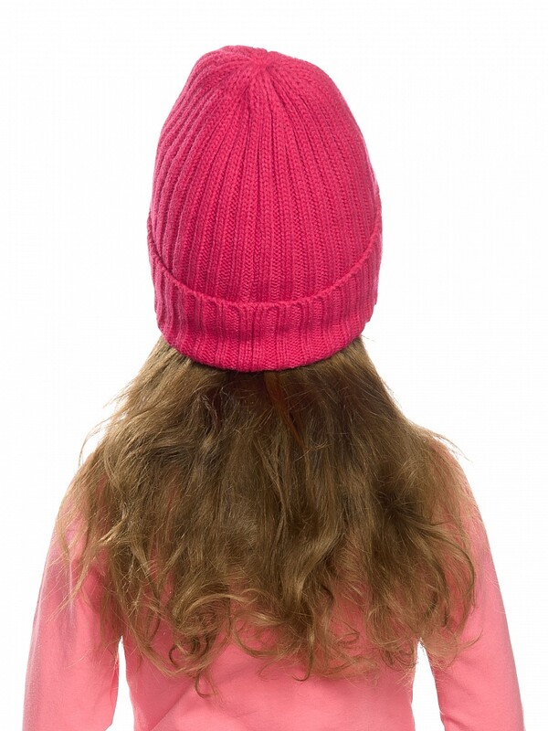 Шапка для девочек. Вязаная шапка на подкладе из флиса, с отворотом. Декоративные нашивки.