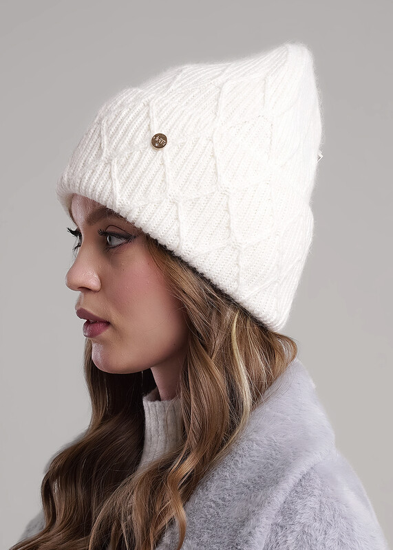 Женская шапка с отворотом выполнена из высококачественной пряжи с добавлением ангоры, декорирована стильной нашивкой. Утепление флисом по всей голове. Станет не только отличной защитой от холода, но и модным аксессуаром.