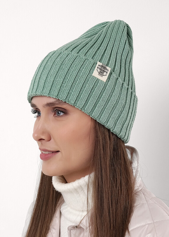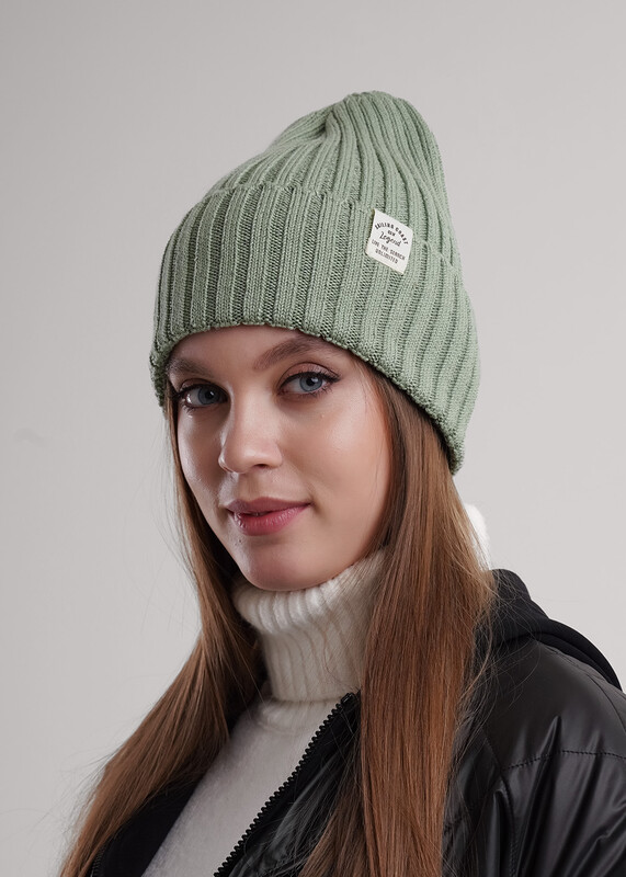 Женская шапка с отворотом, без подклада, декорирована нашивкой логотип. Идеально подойдёт для весенне - осеннего периода.