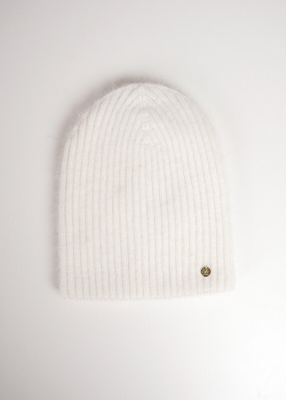 Женская двойная шапка без отворота, связаная ластичным переплетением, выполнена из пряжи с содержанием высококачественной ангоры.