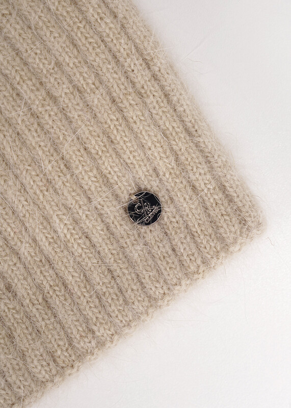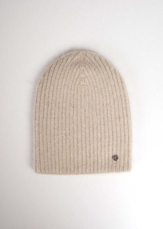 Женская двойная шапка без отворота, связаная ластичным переплетением, выполнена из пряжи с содержанием высококачественной ангоры.