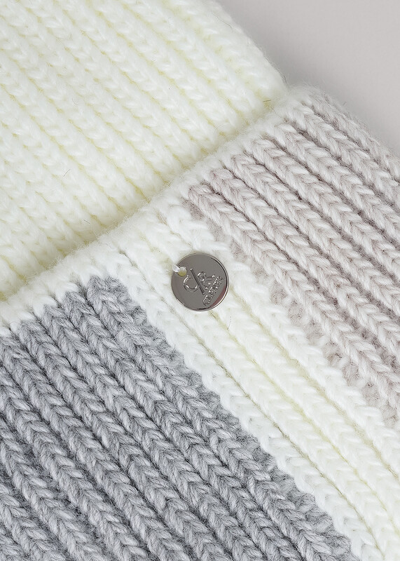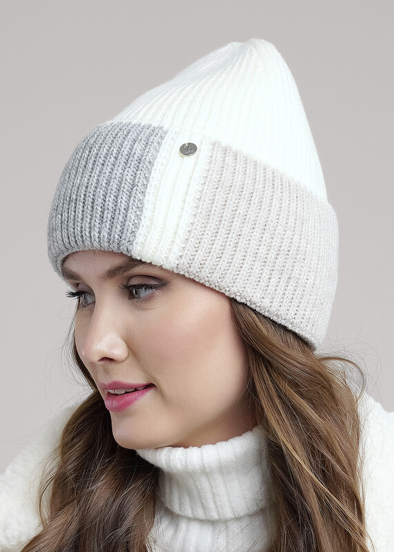 Шапка женская с отворотом, с подкладом из флиса. Выполнена из комбинированной пряжи, декорирована стильной нашивкой. Станет не только отличной защитой от холода, но и модным аксессуаром.